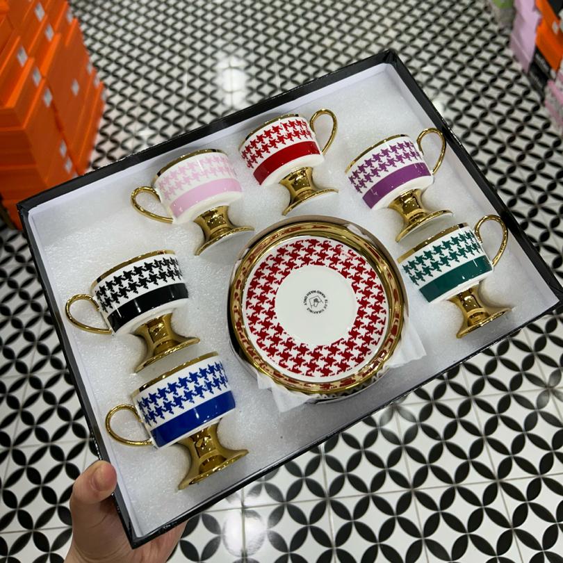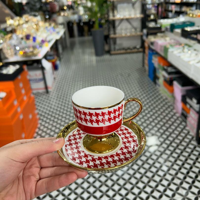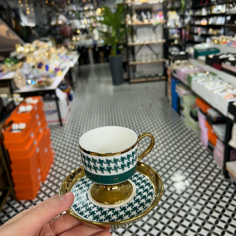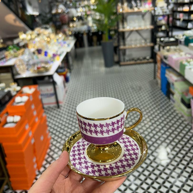 6’lı renkli kaz ayağı fincan takımı