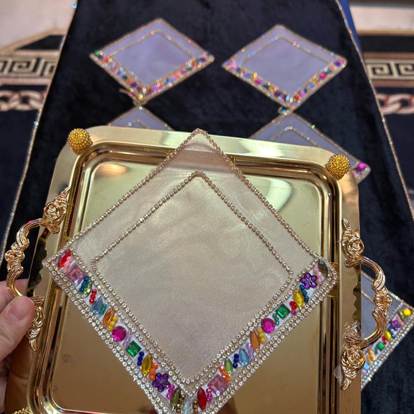 Altılı Renkli sıralı taş gold sunum peçetesi
