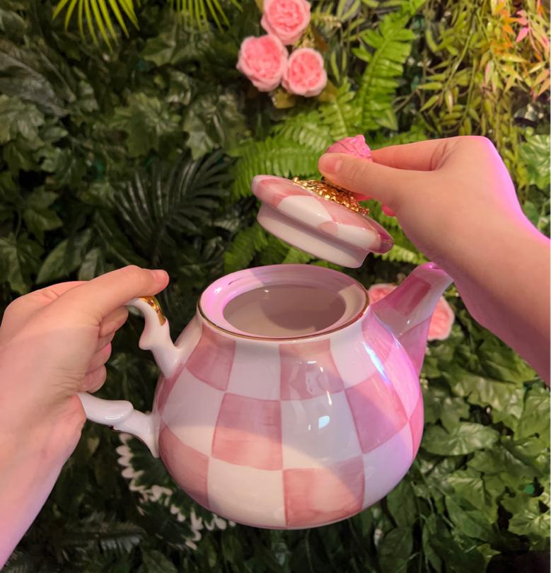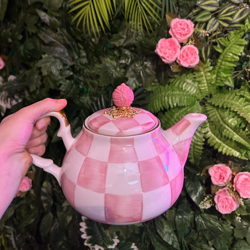 Pembe dama çaydanlık