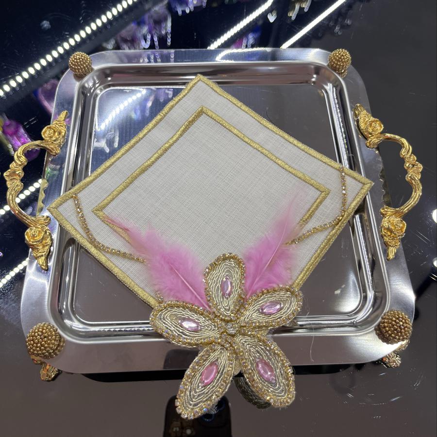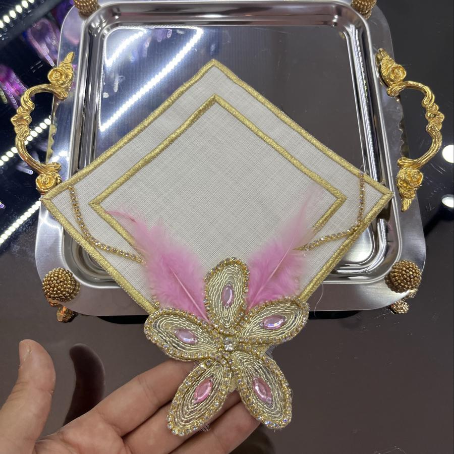 Pembe tüylü taşlı sunum peçetesi (Adet)