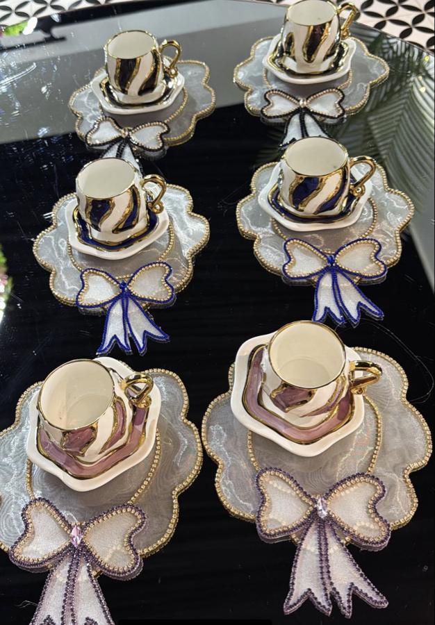 Renkli 6 lı fincan ve peçete takımı